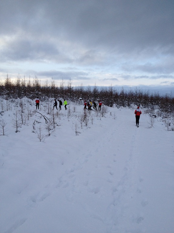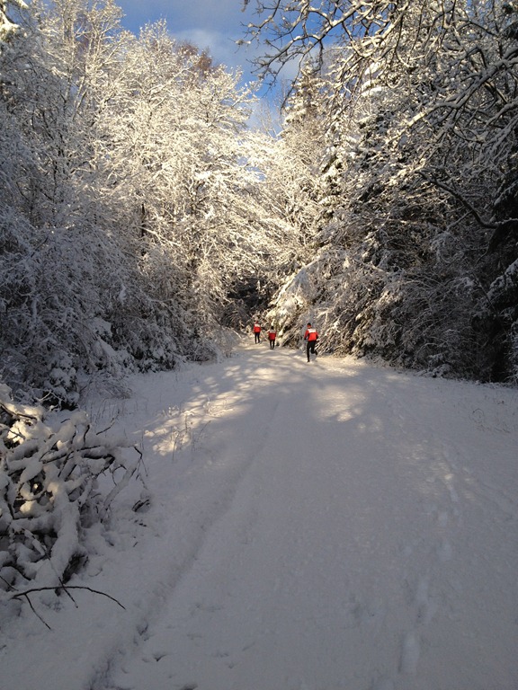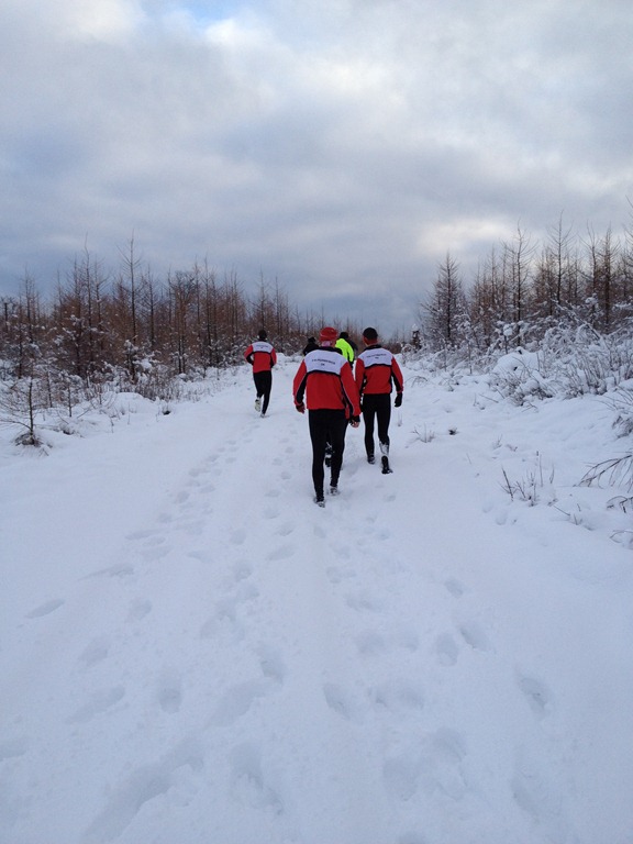 Väl vid Mossjön så gav vi oss ut på en runda. Det var mycket nysnö så det var ganska jobbigt att springa.