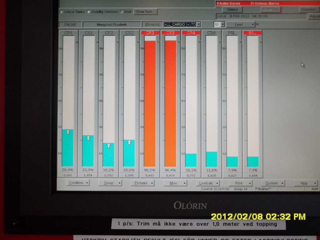 Lastdatorn som visar volymen i lasttankar eller ballasttankar![]()