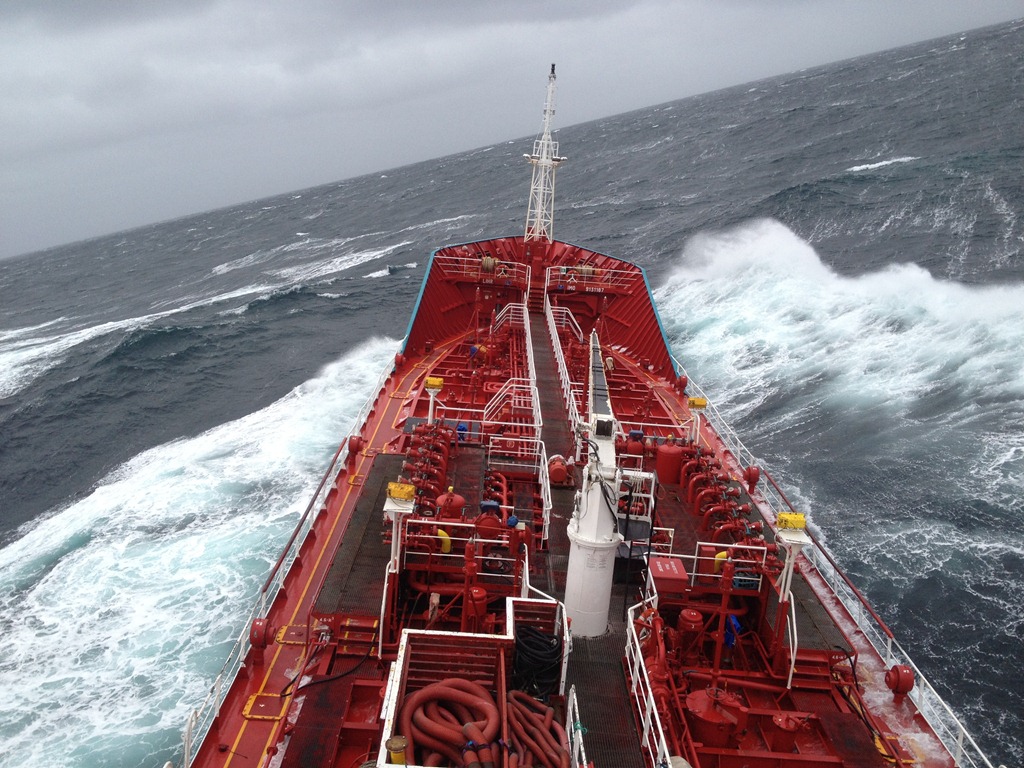 08:00 Går av vakten när vi nästan kommit ut på Hustadvika innan Kristiansund. Skyndar mig ner för att äta lite frukost innan det börjar rulla för mycket.