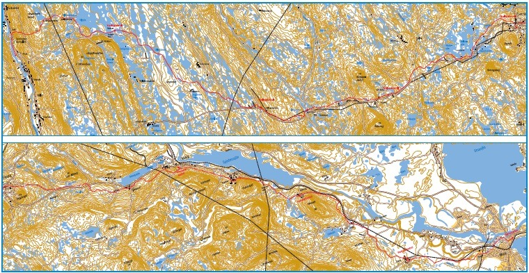 08:18 Kommer fram till Smågan och stannar för att ta lite dricka och lite energi. Sen stakar jag vidare och när jag åkt cirka 20 km så börjar det gå utför. Då är det bara att ställa sig i fartställning och glida. Glider förbi mycket folk och känner att jag har riktigt bra skidor idag.