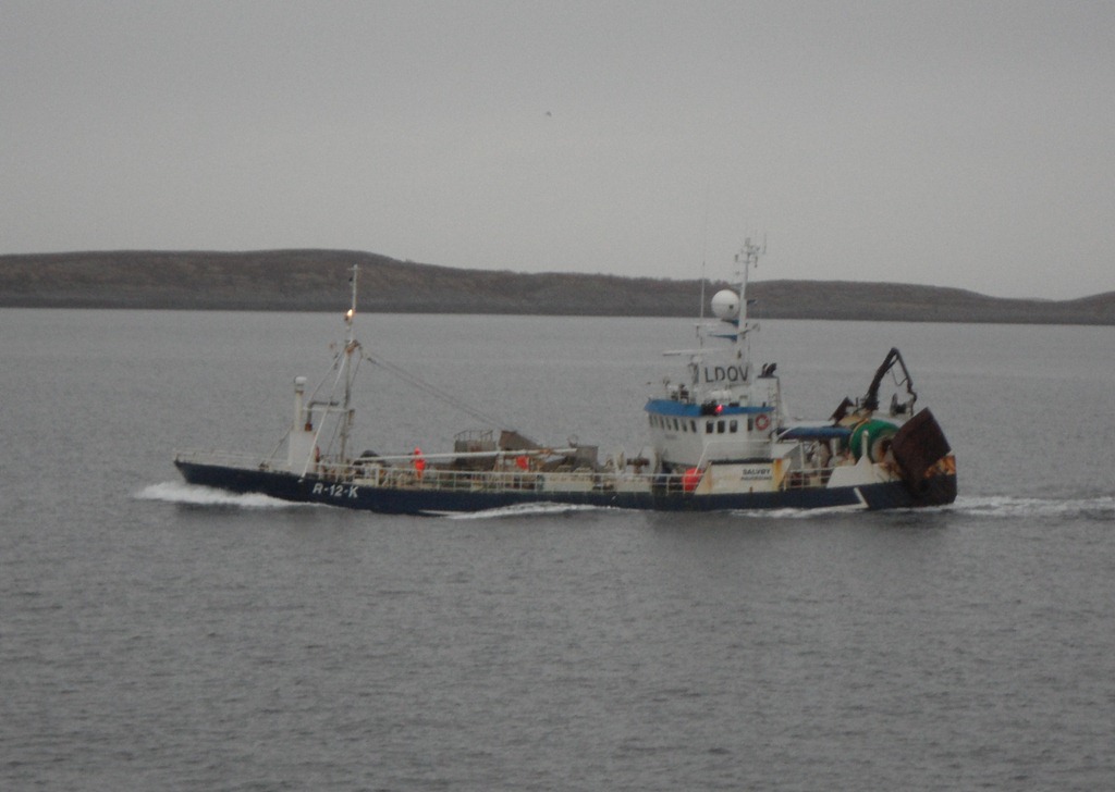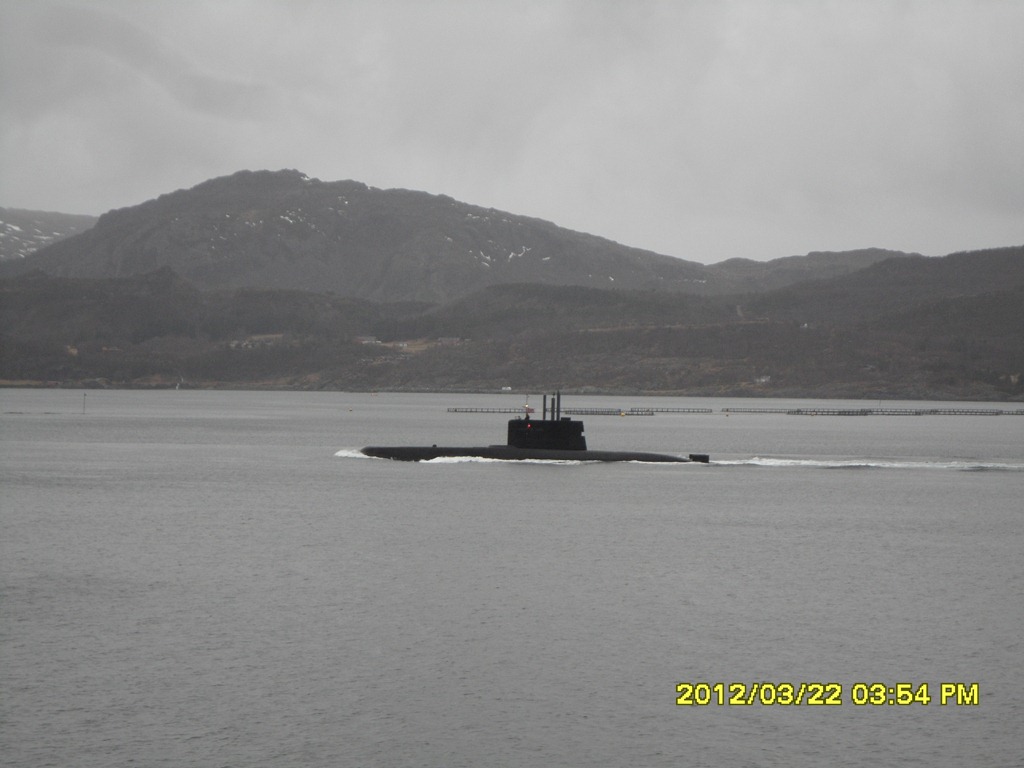 14:00 Kommer på vakt när vi lämnar Folda och är på väg in mot Rörvik. Vinden har avtagit men det är fortfarande mulet. Vi fortsätter norrut.