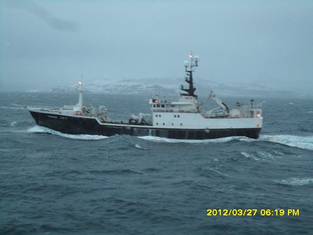02:00 Kommer på vakt ute på Finnmarkskusten och fortsätter nordväst ut. Rundar Nordkyn och in mot Honningsvåg.