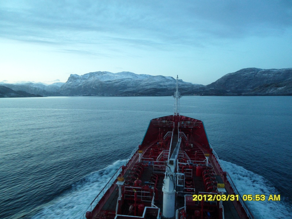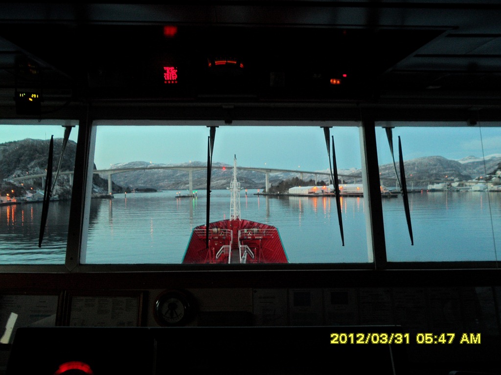 02:00 Kommer på vakt vid Oksebåsen norr om Ålesund. Fortsätter ut genom Flåvärsleia och det slingrar lite pga gammal sjö. Det blåser inget så det är ganska fint väder.