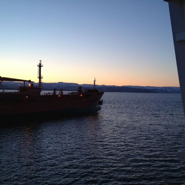 02:00 Kommer på vakt och vi ligger utanför kaj vid Mongstad och väntar på att Bergen Star skall få klartecken att avgå.