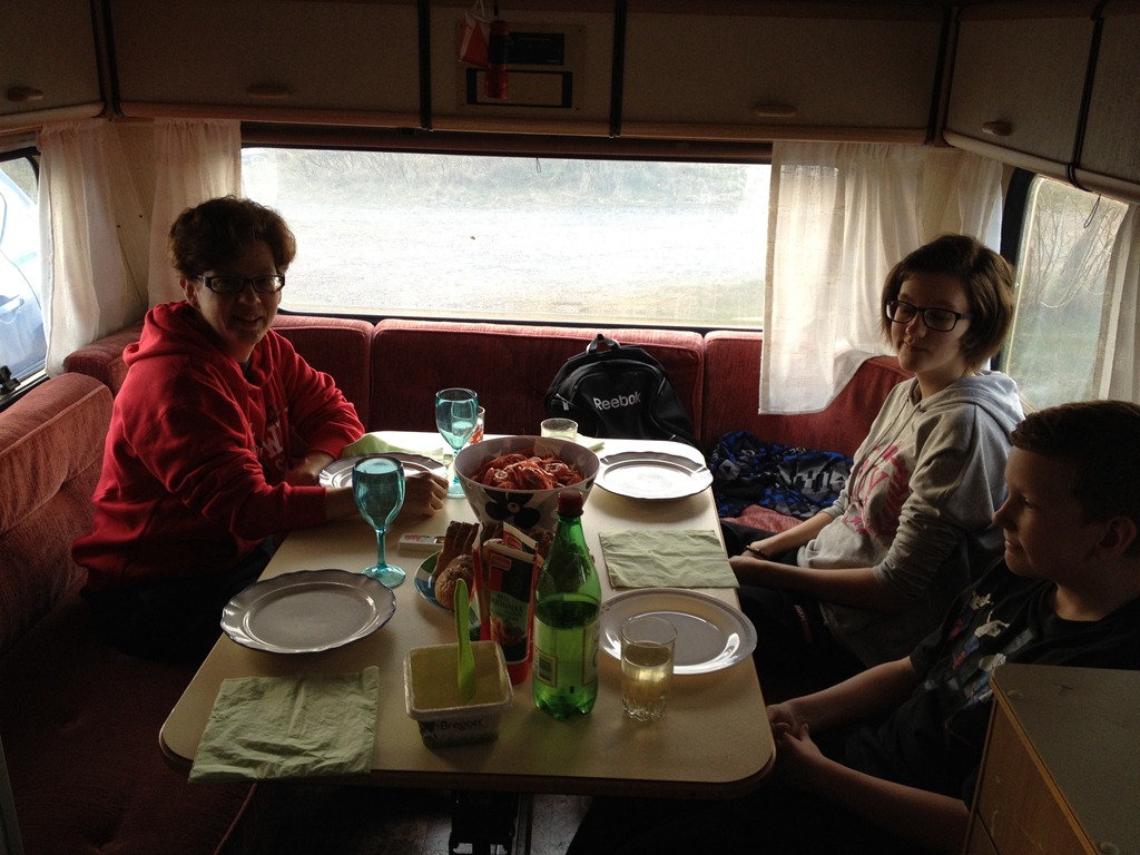 Efter den promenaden så satte vi oss i husvagnen och åt färska räkor och drack lite gott vin. ![]()