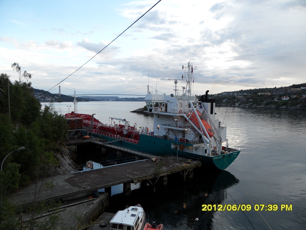 04:30 Förtöjda på Skålevik i Bergen för lossning.
