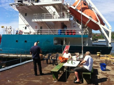 Efter frukosten så går folk ut och börjar på lite olika arbete ute på däck. Jag tar och går igenom lite av underhållsarbetet och skriver in det på Star IPS.