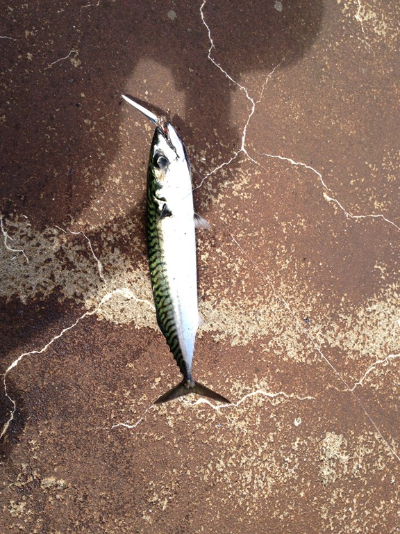 Sedan går jag ut för att pröva fiskelyckan lite. Det blev faktiskt en makrill och en sej ganska omgående.