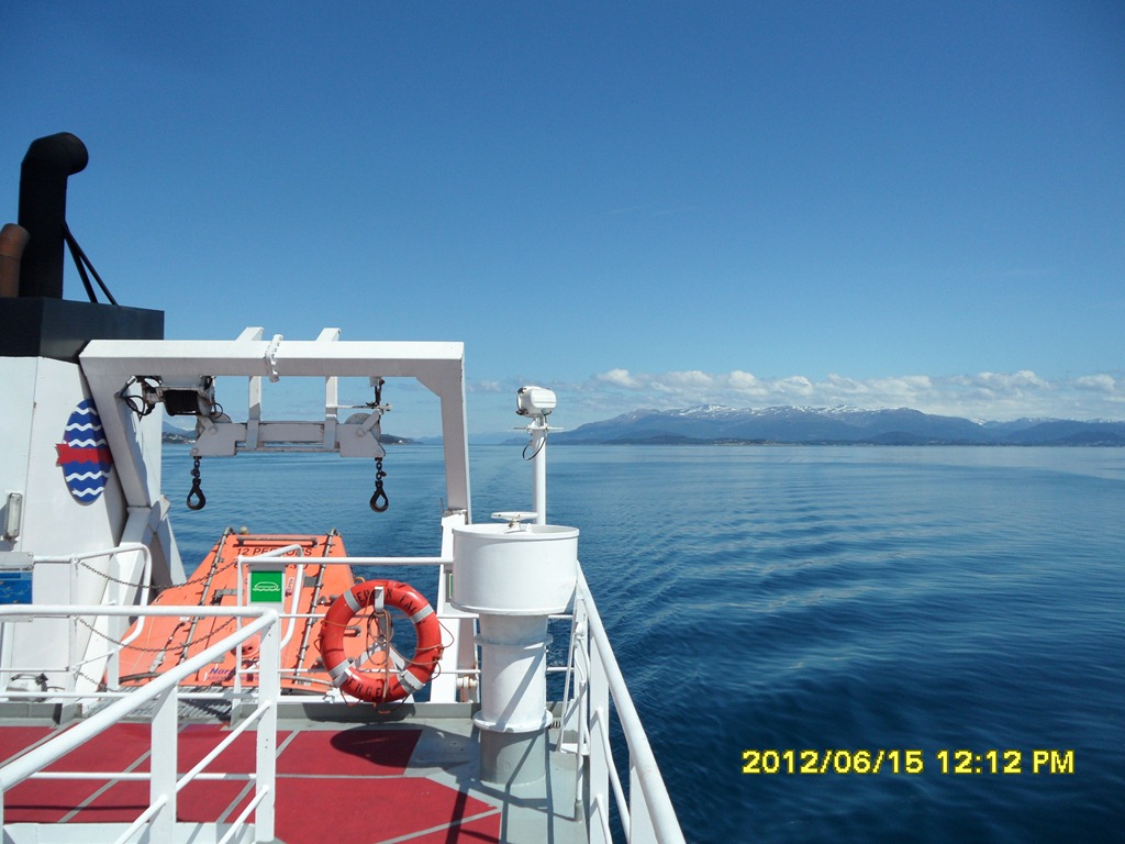 14:00 Kommer på vakt vid Bömlo och fortsätter söderut genom Haugesund och Karmsundet.