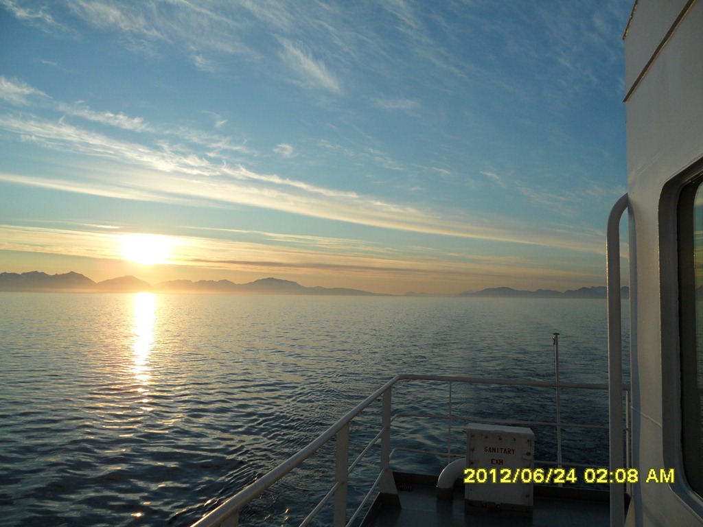 02:00 Kommer på vakt norr om Andörja solen skiner och det är stilla blek.