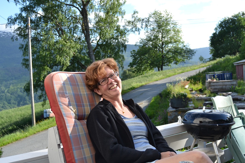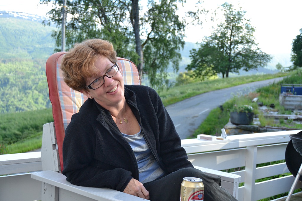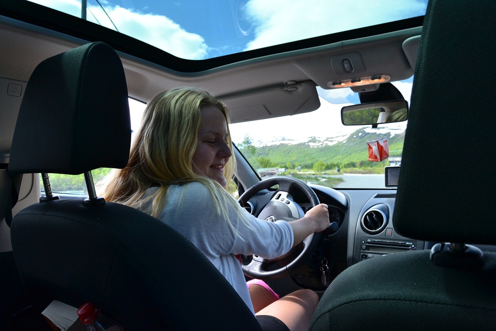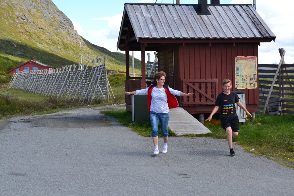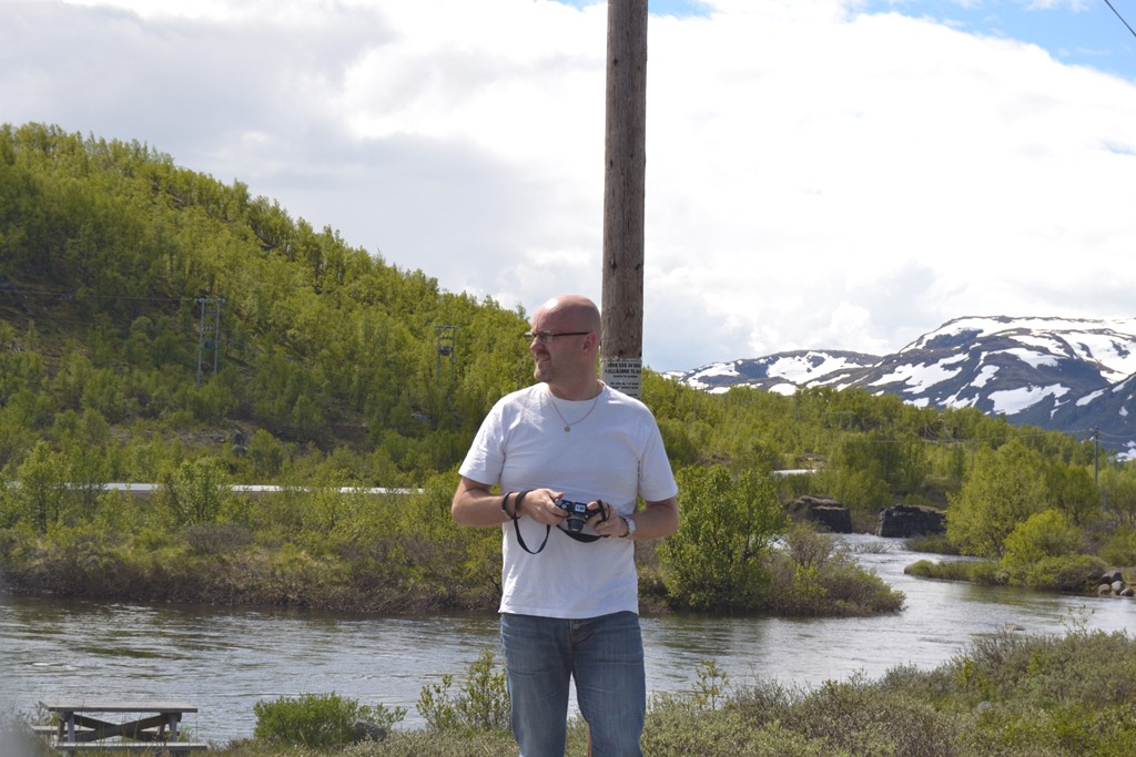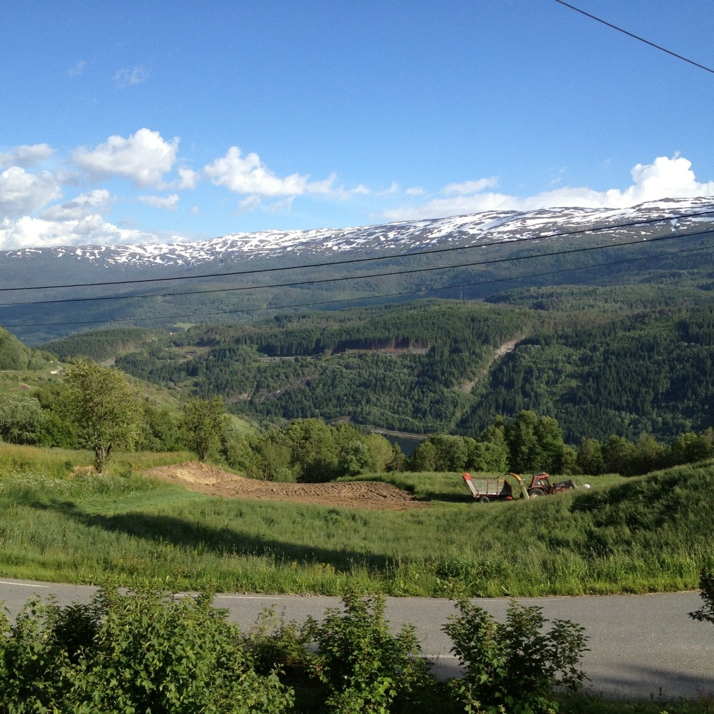 Vi stannar och äter i Valdres på en liten vägkrog. Sen fortsätter vi med några småstopp och solen kommer fram mer och mer.