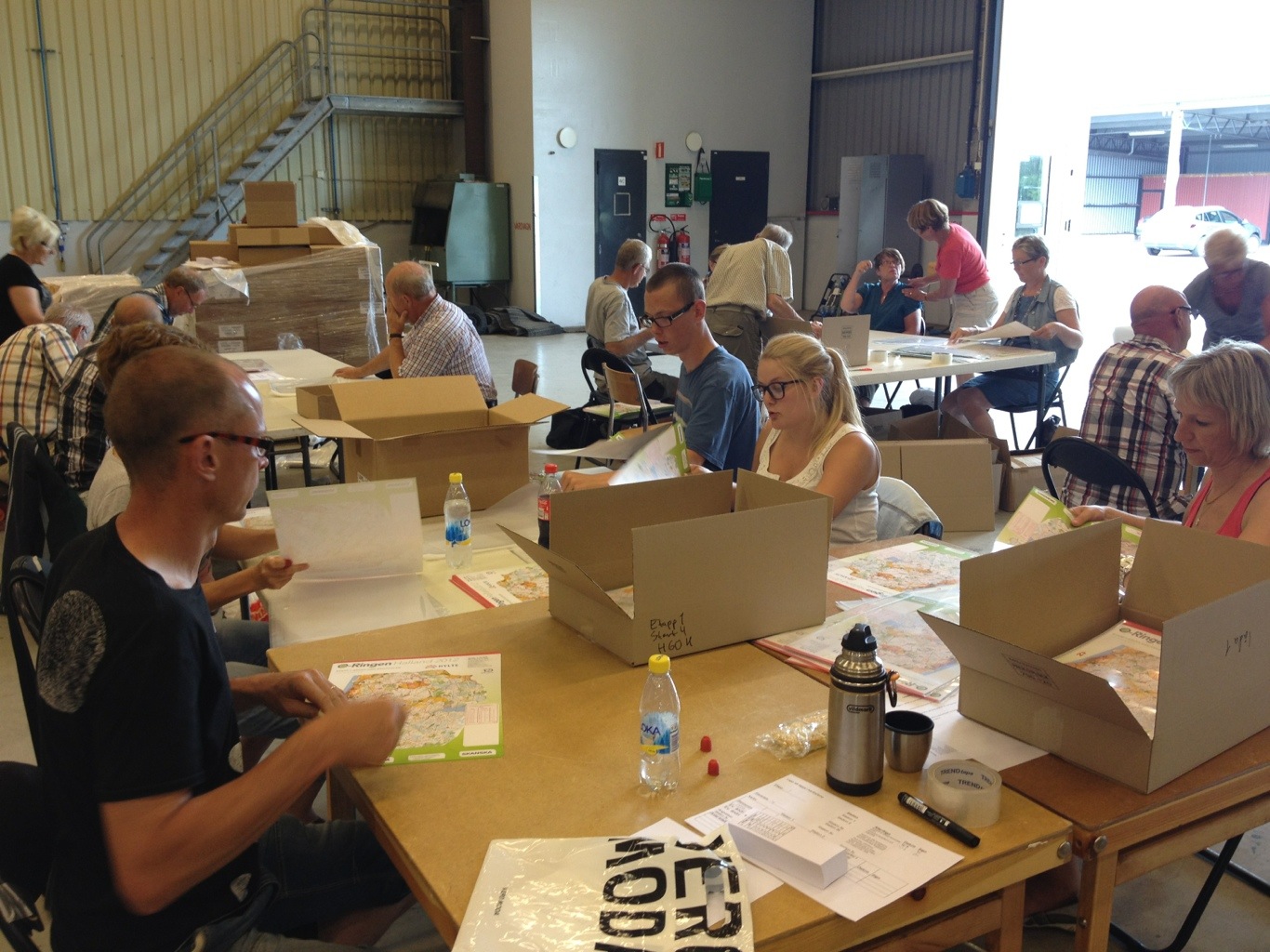 Vi hann inte packa alla kartor idag men det blev ändå ca 12 000 kartor plastade idag. Nu har vi bara 6000 kvar. Vi kördde sedan hem för att byta om inför kvällens Tjogetträning.