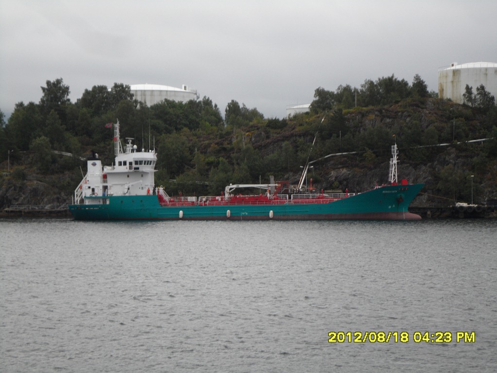 11:20-11:45 Förhalar på Skålevik från väntekaj till lastkajen. Vi lastar ombord MSD. Därefter äter vi lite lunch i väntan på M/S Nordkapp.