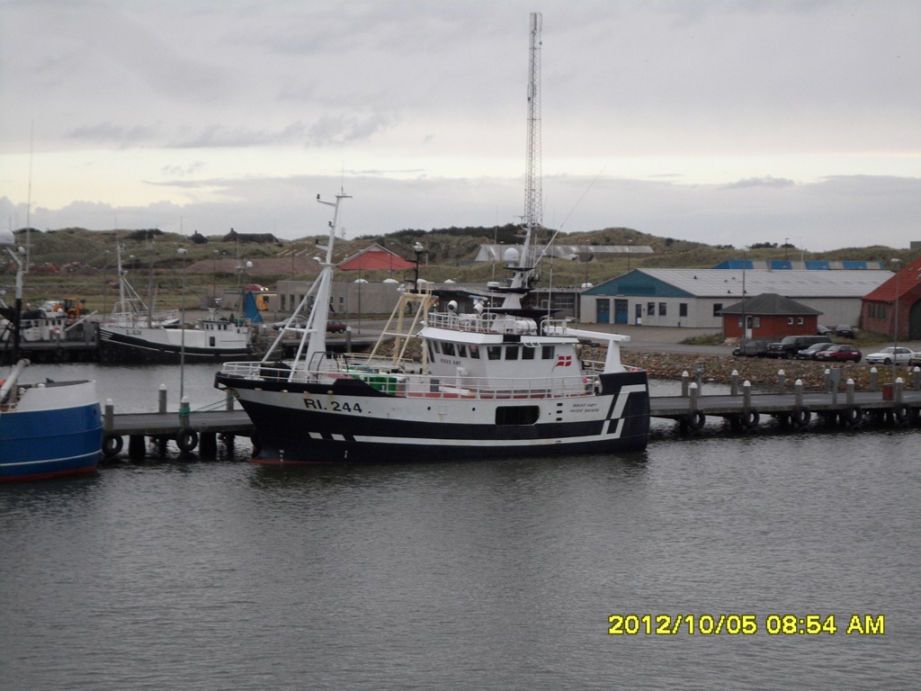 09:00 Förtöjda vid kaj i Hvide Sande och jag skyndar mig att ta på mig träningskläder. Känner att förkylningen släppt nu och jag har inte sprungit sedan den 13 September. Så jag springer en runda på ca 6 km. Men när jag skall vända efter 3 km så börjar det ösregna. Så jag var ganska blöt och frusen när jag kom tillbaka till båten. Men nu tog jag mig en varm dusch och skall krypa ner i sängen några timmar.