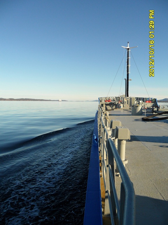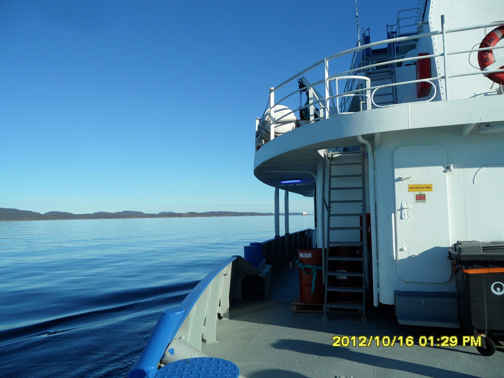 08:00 Går av vakten när vi passerar Kolbeinsflua och kommer ut på Hustadvika.