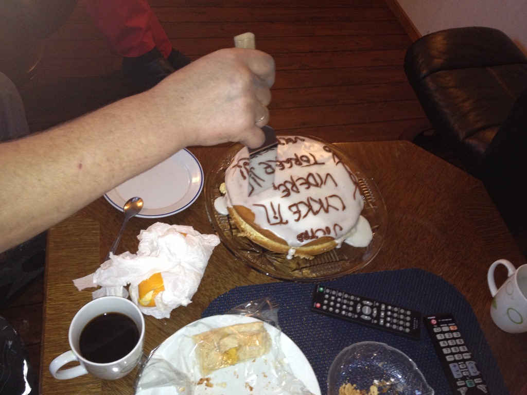 Vi äter lite tårta på eftermiddagen.