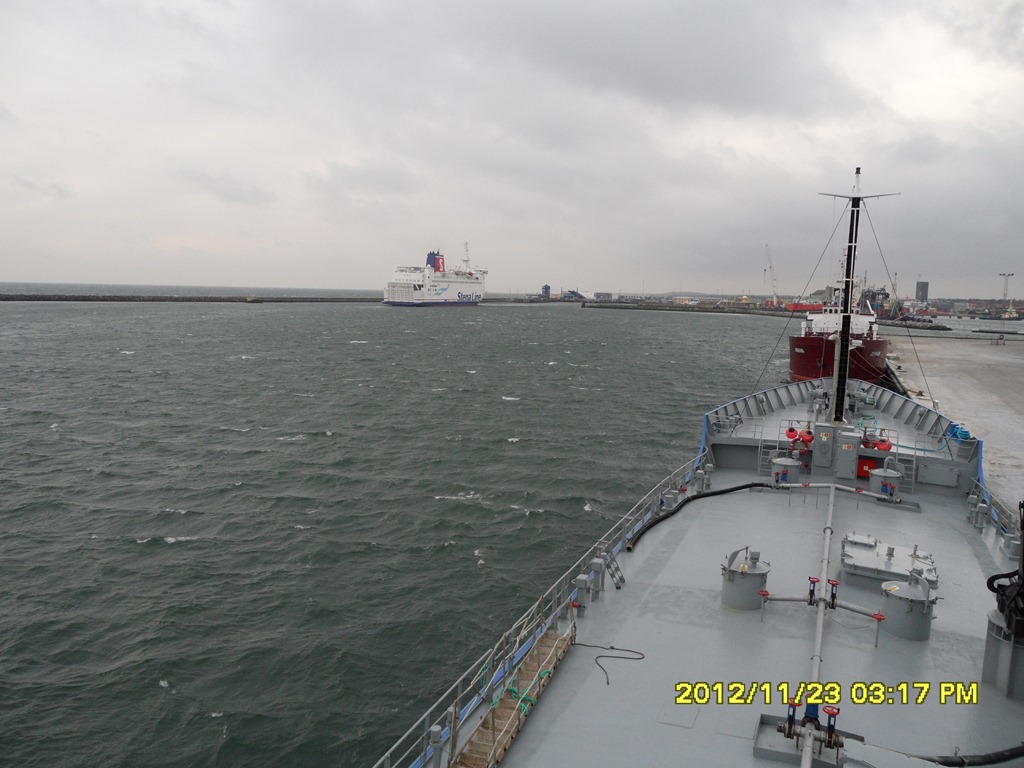 Efter maten så går jag upp på bryggan i väntan på att de skall bli färdiga med fyllandet av ballast.