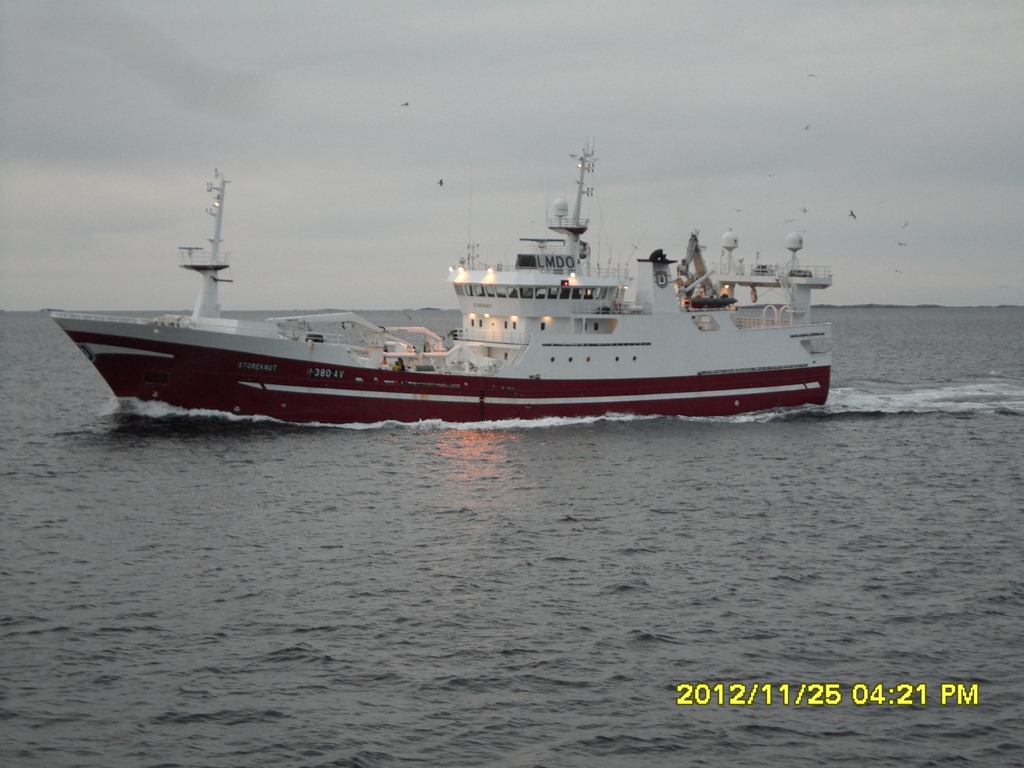 14:00 Kommer på vakt syd om Fedje och fortsätter norrut.