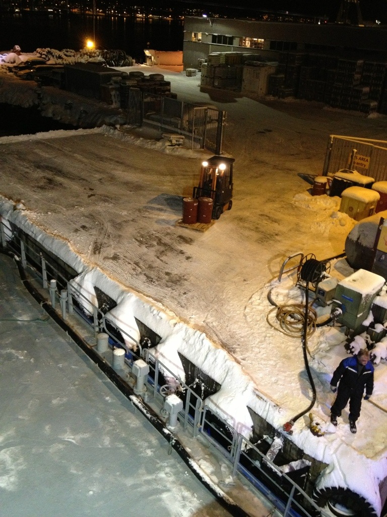 16:45 Förtöjda vid NJ Bunker i Tromsö för att bunkra diesel och smörjolja.