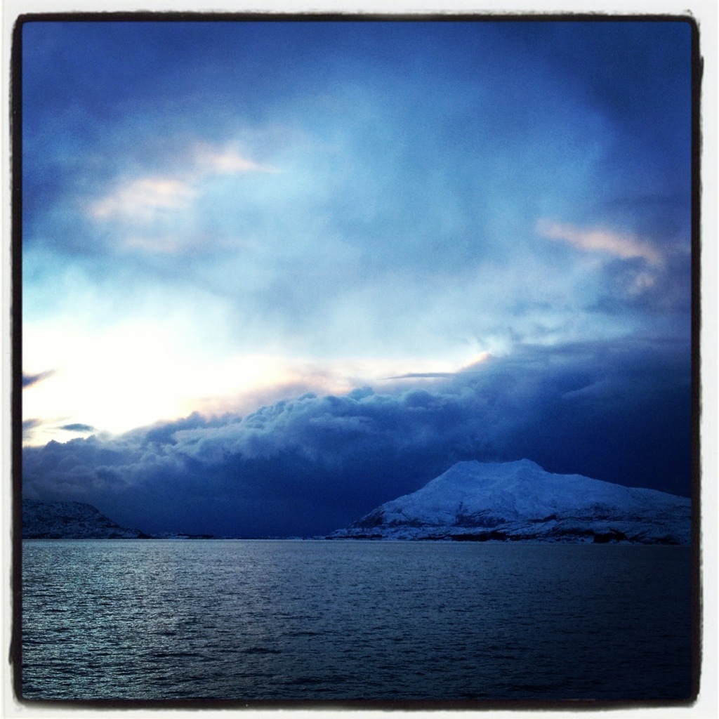 14:00 Kommer på vakt efter att ha ätit en jättegod currygryta. Så nu sitter jag här med kaffe och vi närmar oss Sandnessjöen. Fick precis reda på att vi ska lasta för Inverness i Skottland på söndag. Så vi får hoppas det slutar blåsa tills dess.