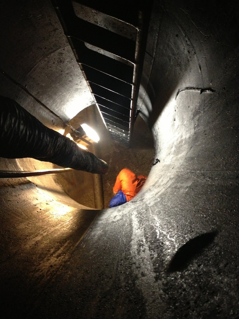 14:00 Kommer på vakt och fortsätter lossningen. Det går trögt att lossa och är full snöstorm ute. Så det är inget vidare väder att gå på däck.