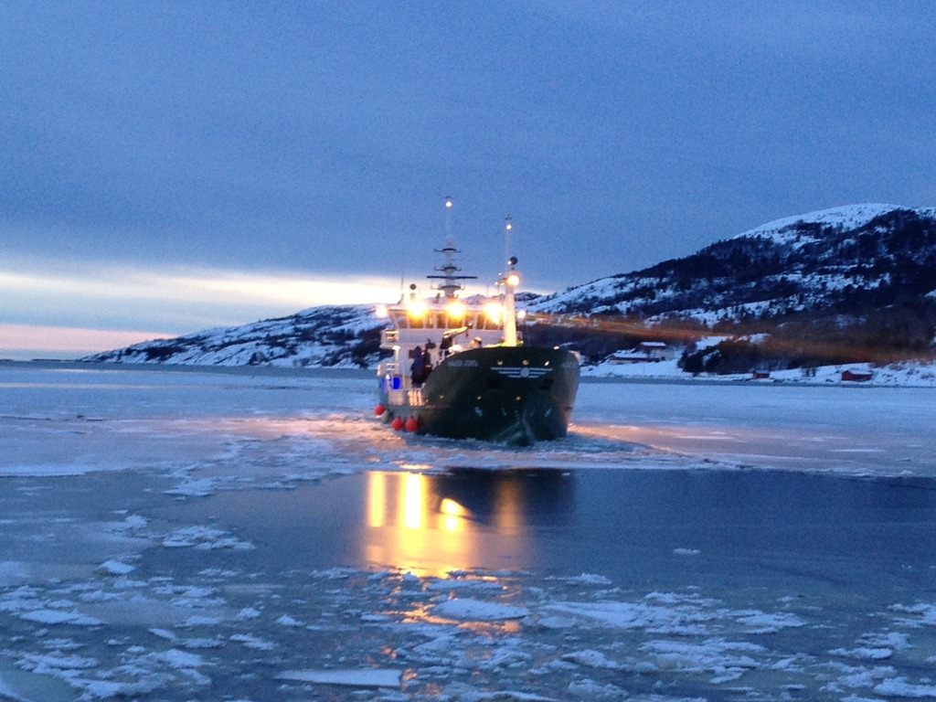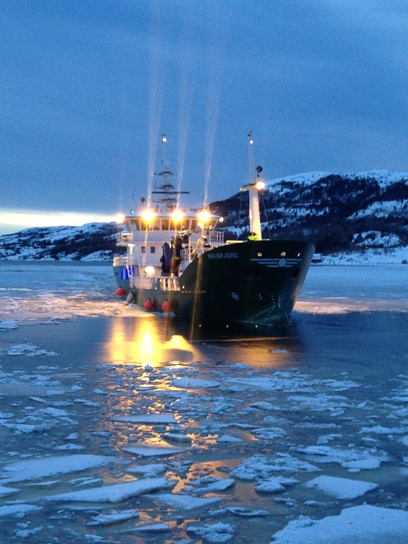 Senare under dagen så kom Haugfjord sakta in genom isen och hade han kört långsammare så hade han nog frusit fast.