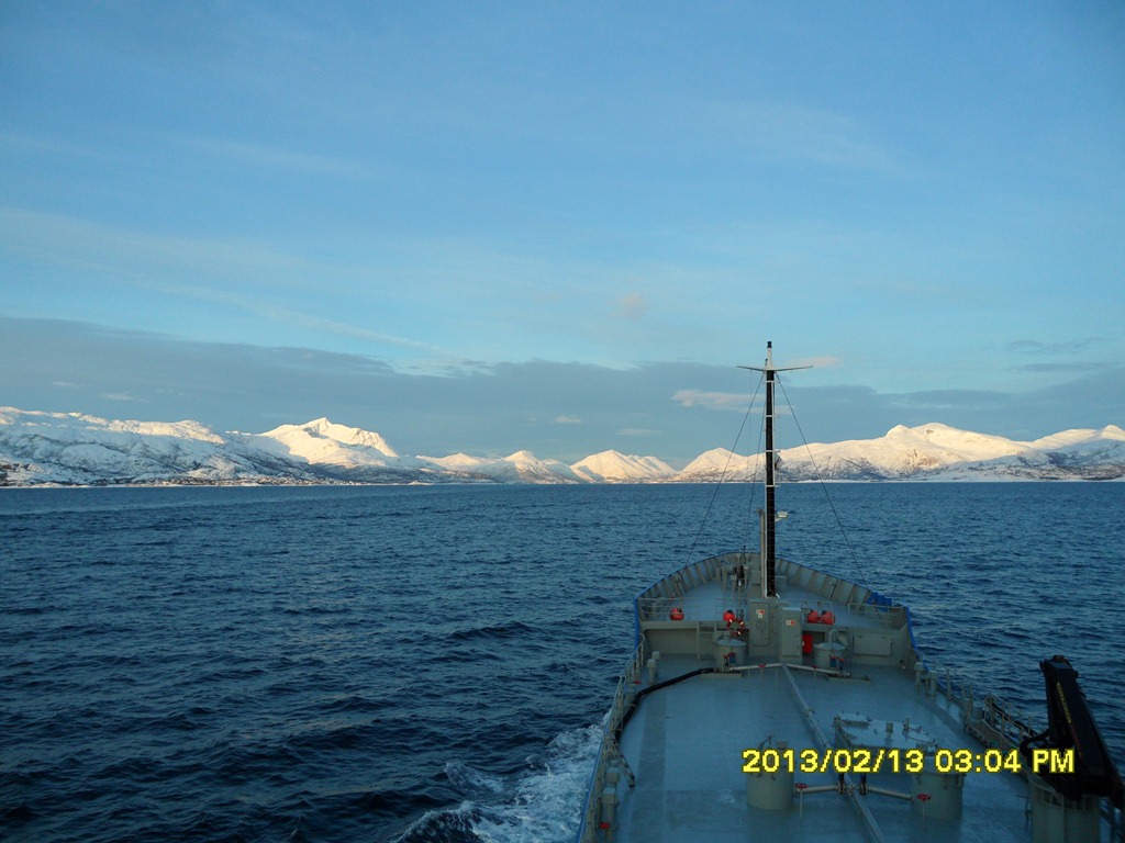 08:00 Går av vakten mör vi passerar Landegode utanför Bodö.