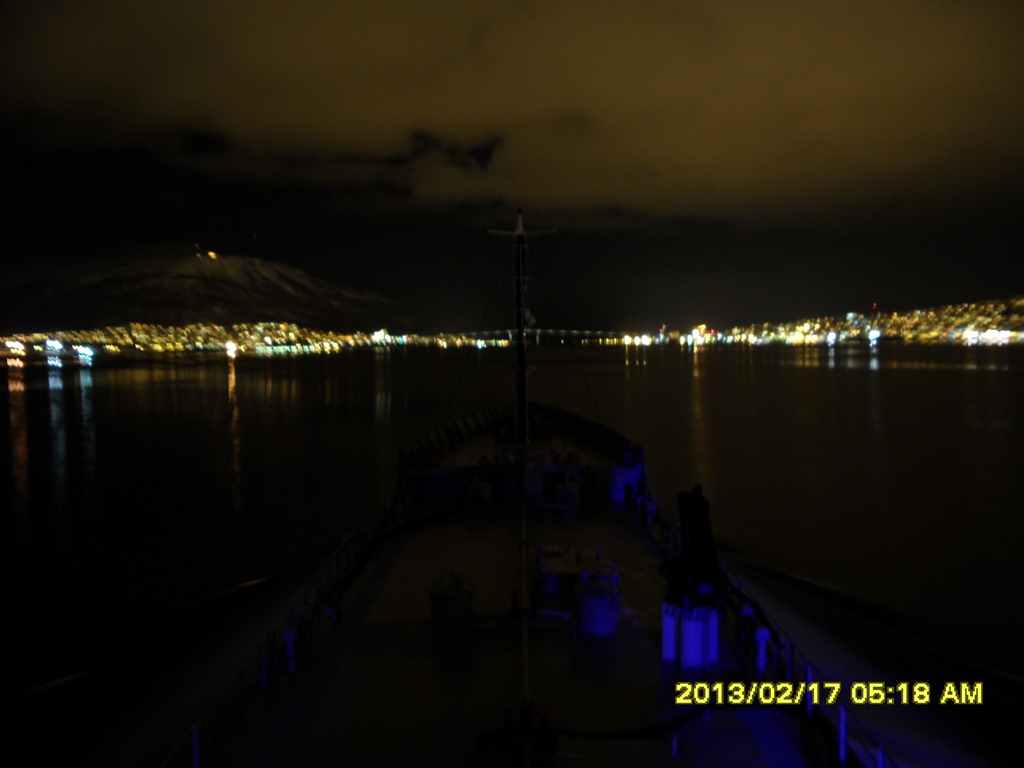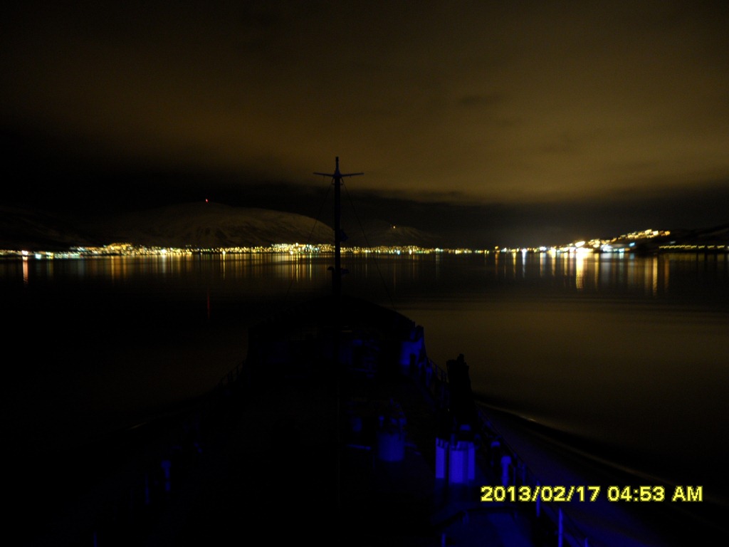 02:00 Kommer på vakt innan Grötsundet och fortsätter västerut. Genom Tromsö i fint stilla väder.