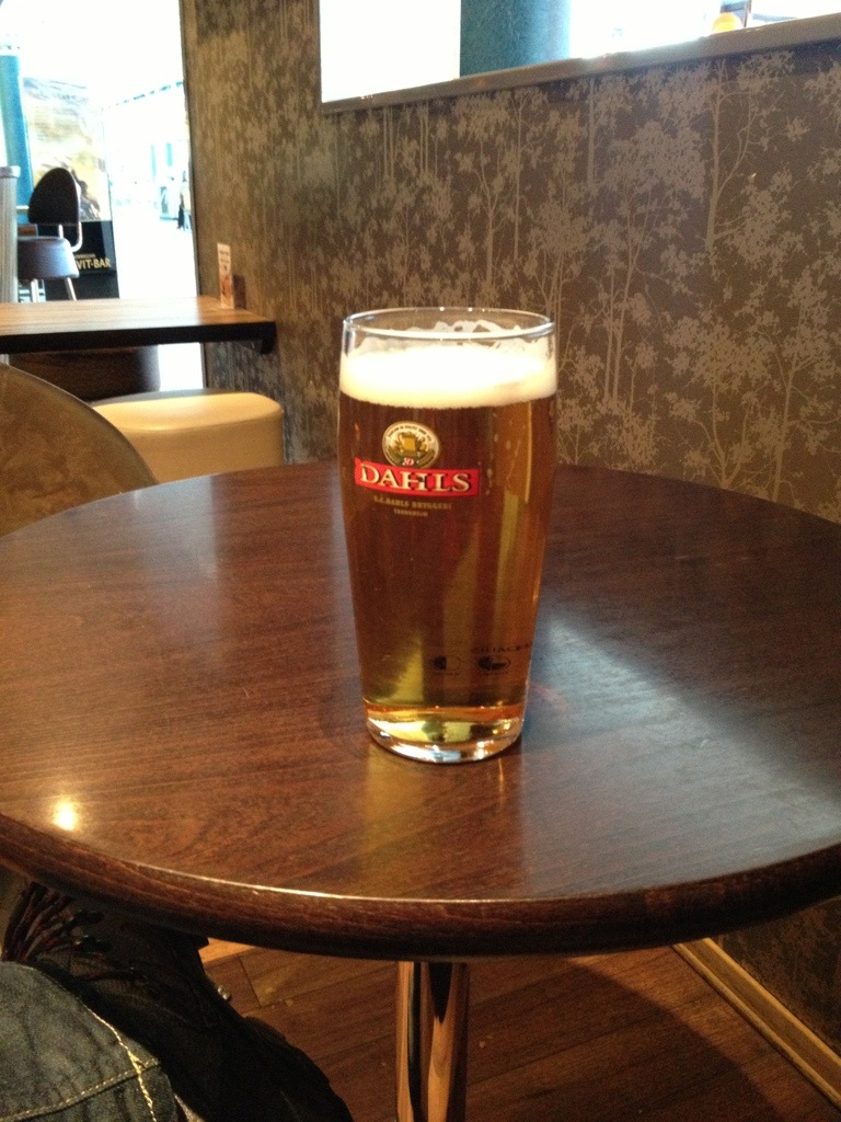 Checkar in och går för att ta mig en kall avmönstringsöl.