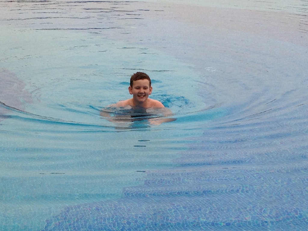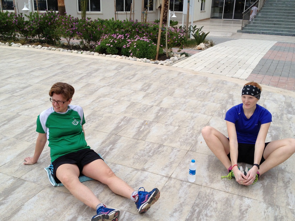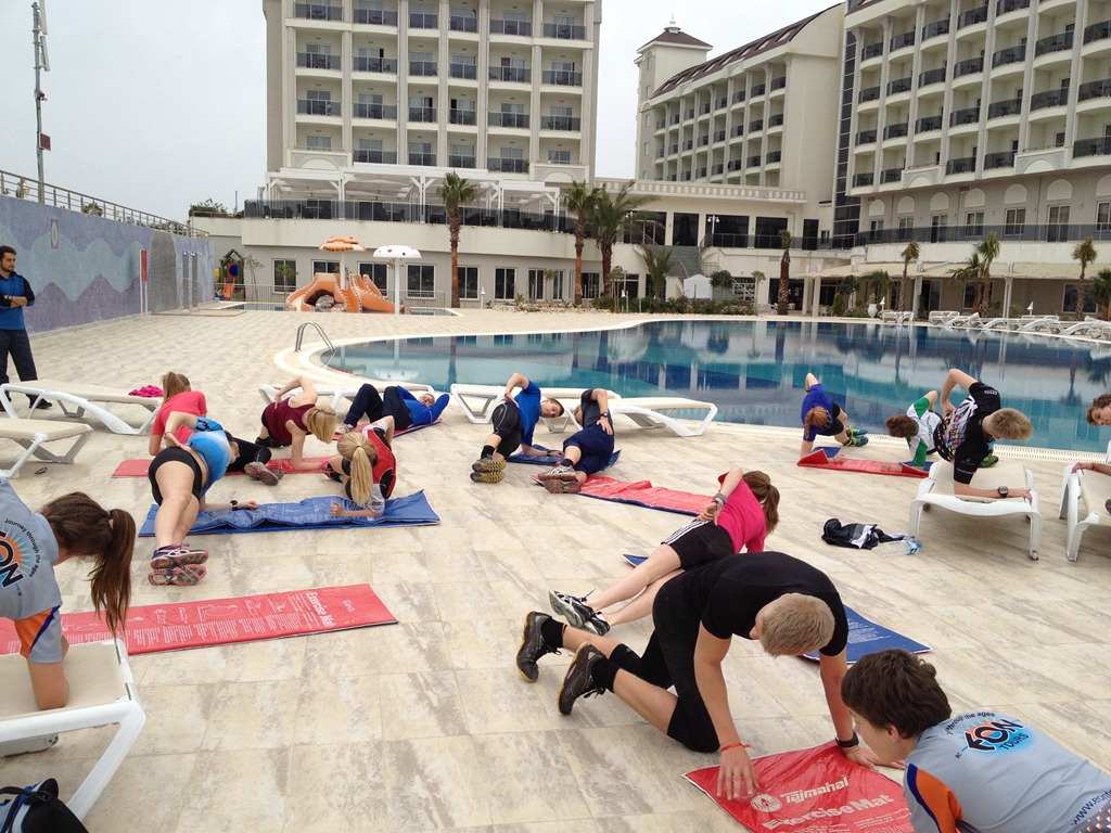 Efter frukost så hade vi lite vila innan första träningspasset som var ett styrkepass för mage och rygg vid poolen.
