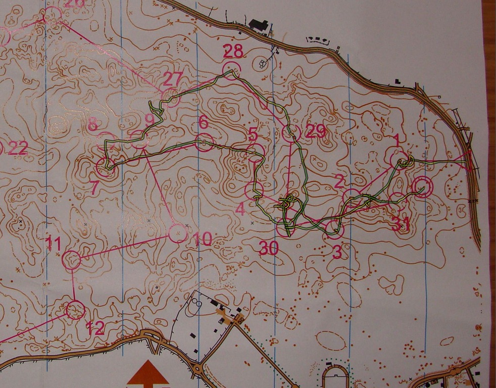 Det var en kulle med branta stup och rester av en gammal stad. Så det blev en ganska tuff men rolig orientering. Jag lyckades jättebra till att börja med och lyckades hålla Linnea bakom mig en bra stund. Men sedan så fick jag släppa förbi henne och vi hade följe ett par kontroller. Från min 14 till 15 så gjorde vi ett fel vägval och sprang alldeles för långt. Blev mycket upp och ner mot slutet och jag bestämde mig för att inte ta alla kontroller.