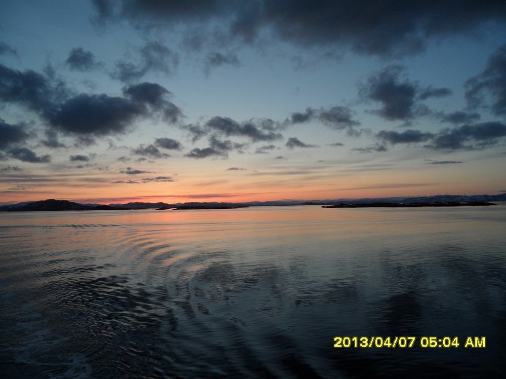 02:00 Kommer på vakt vid Helgelandsflesa. Fortsätter söderut genom Dolmsundet och genom Rörvik.