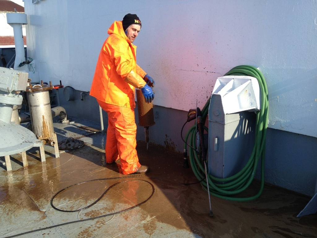 Vaknar och äter lite frukost och dricker kaffe. Sedan går vi ut för att filtrera lasten så vi slipper göra det när vi ska lossa. Det sparar vi många timmar på.