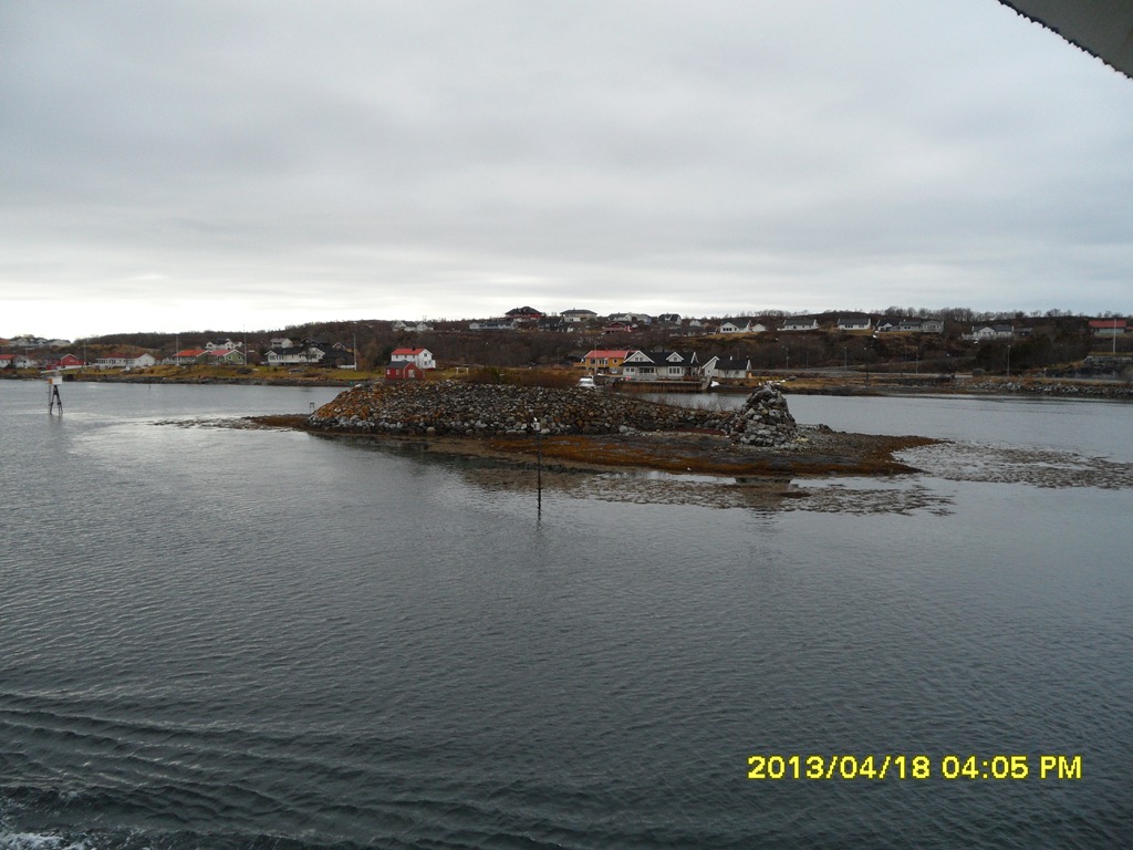 14:00 Kommer på vakt när vi passerar Tjötta. Vinden har avtagit men det är ett disigt och tråkigt väder.