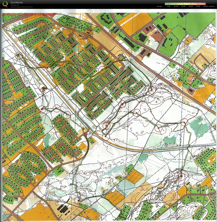 Ut till cykelbanan och tänkte ta stigen ner mot kontrollen, men hamnade på en ny stig som inte var med. på kartan. Upptäckte detta när jag kom ner till nästa tvärstig och följde den upp till kojan där 6:an skulle sättas .
