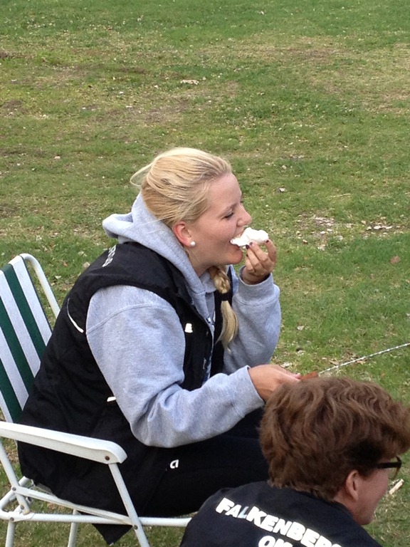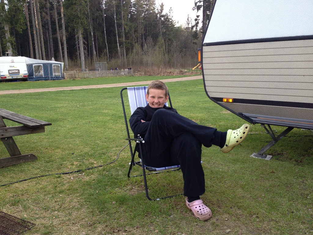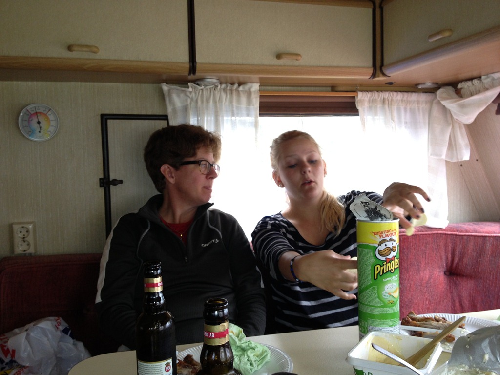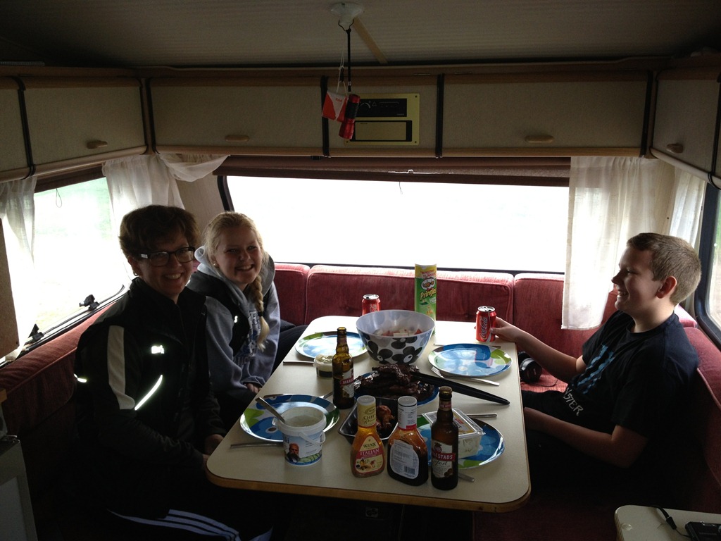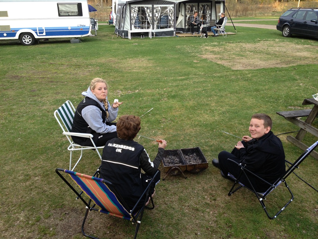 Väl framme på Jälluntofta Camping så åt vi lite rev till lunch. Det hade nu slutat regna men det blåste lite.