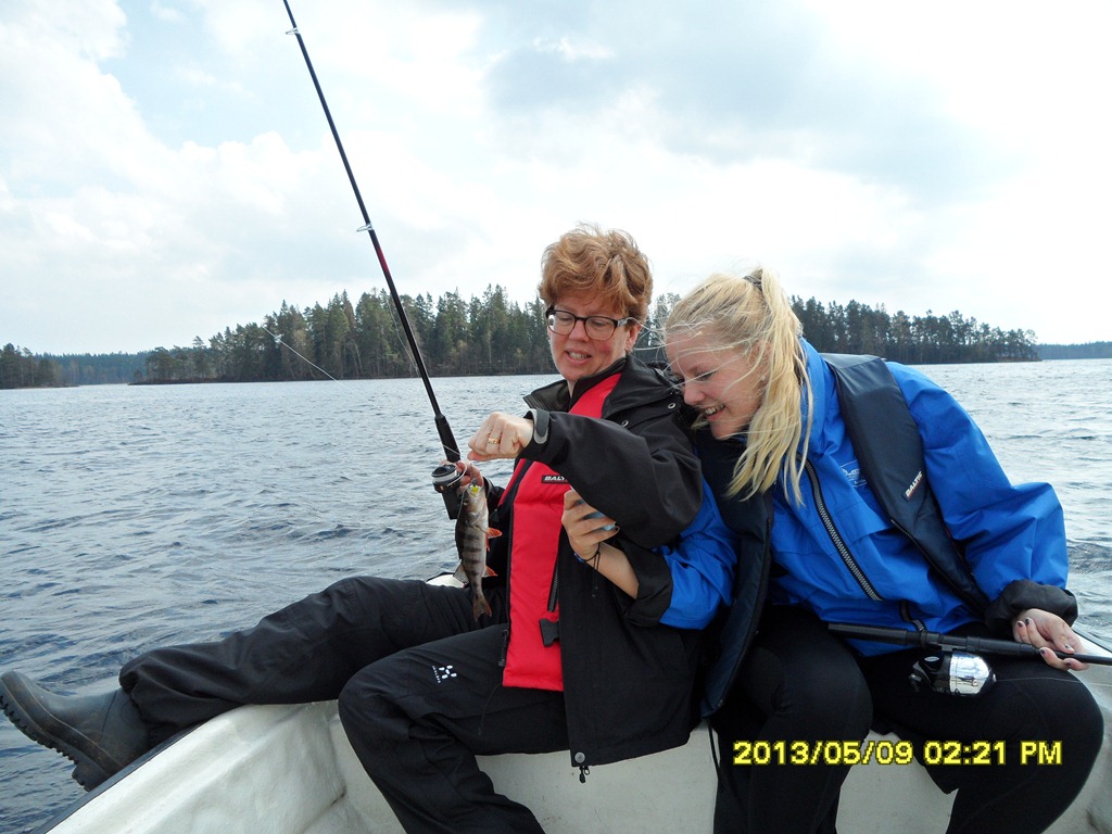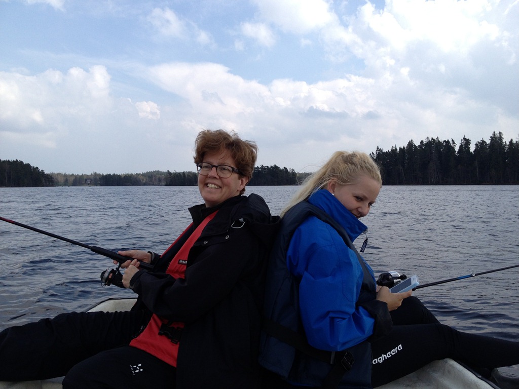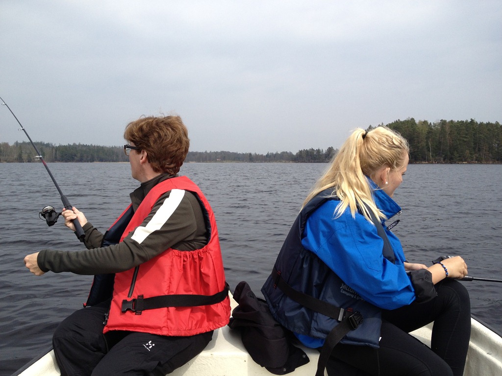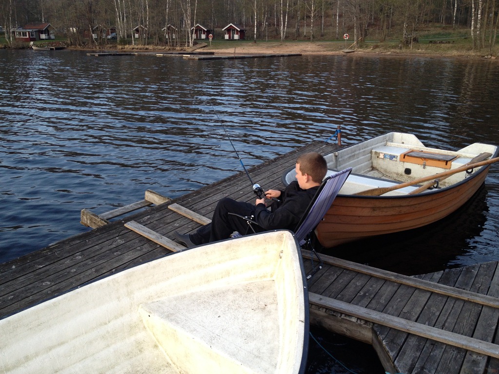 Efter lunchen så ordnade vi fiskekort och hyrde en båt. Sedan rodde vi ut på sjön och fiska lite. Solen kom fram och det blev en riktigt skön eftermiddag på sjön. ![]()