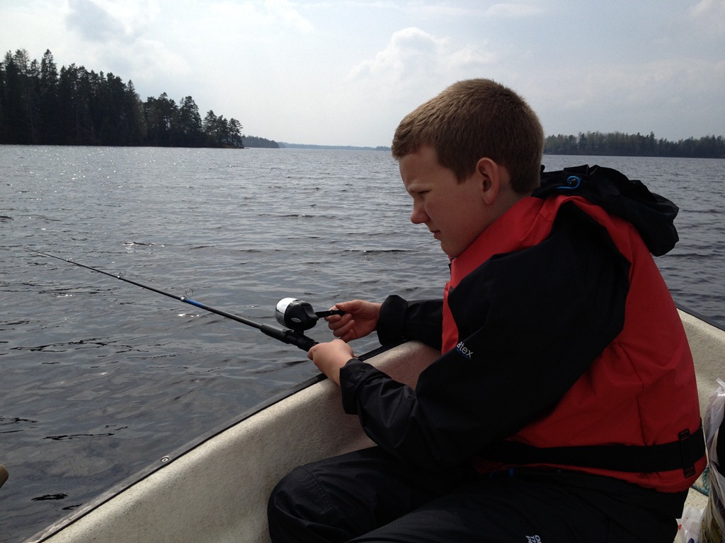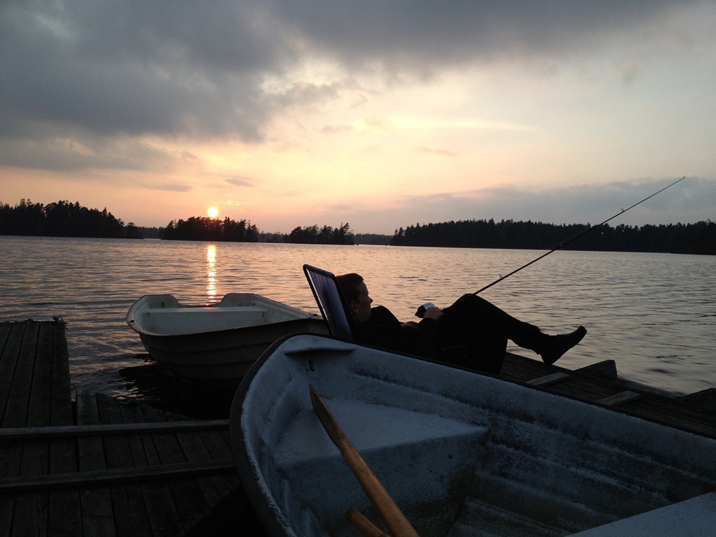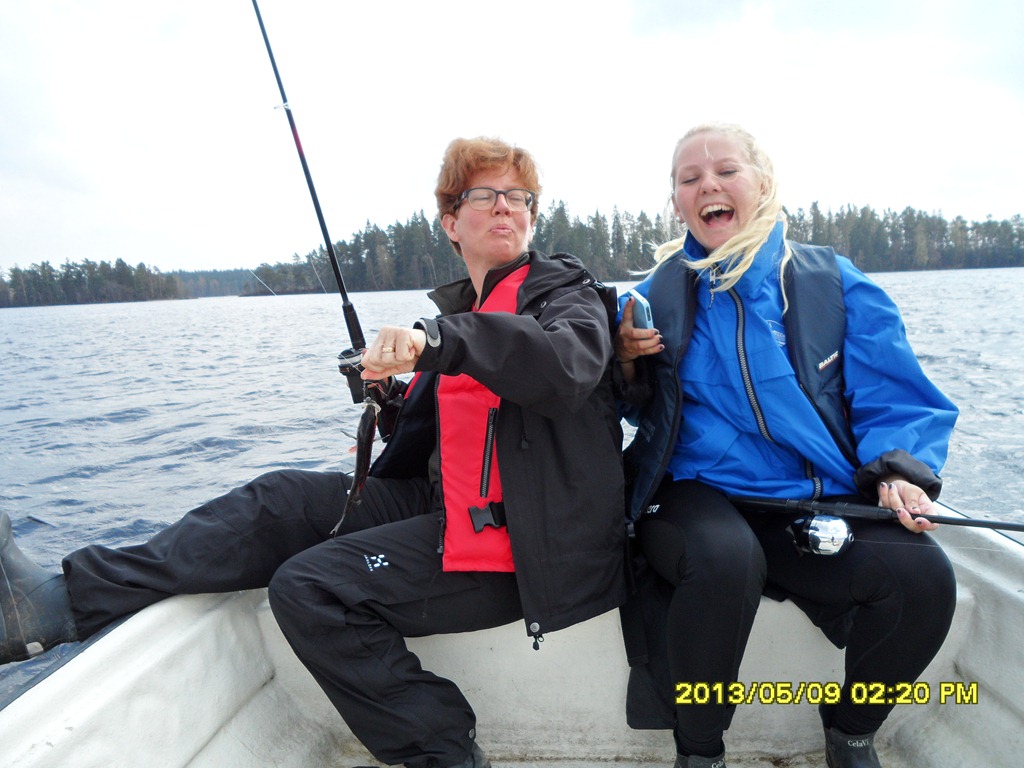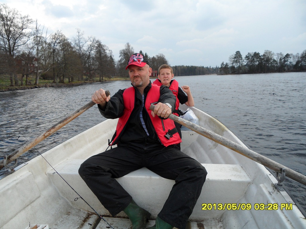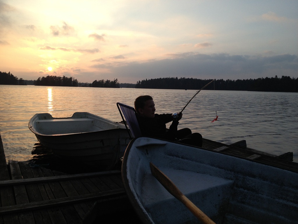 Efter lunchen så ordnade vi fiskekort och hyrde en båt. Sedan rodde vi ut på sjön och fiska lite. Solen kom fram och det blev en riktigt skön eftermiddag på sjön. ![]()