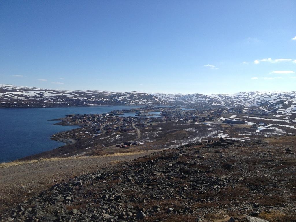 Blir en del uppför och fin utsikt över Båtsfjord. Det har även börjat gro där snön smält.