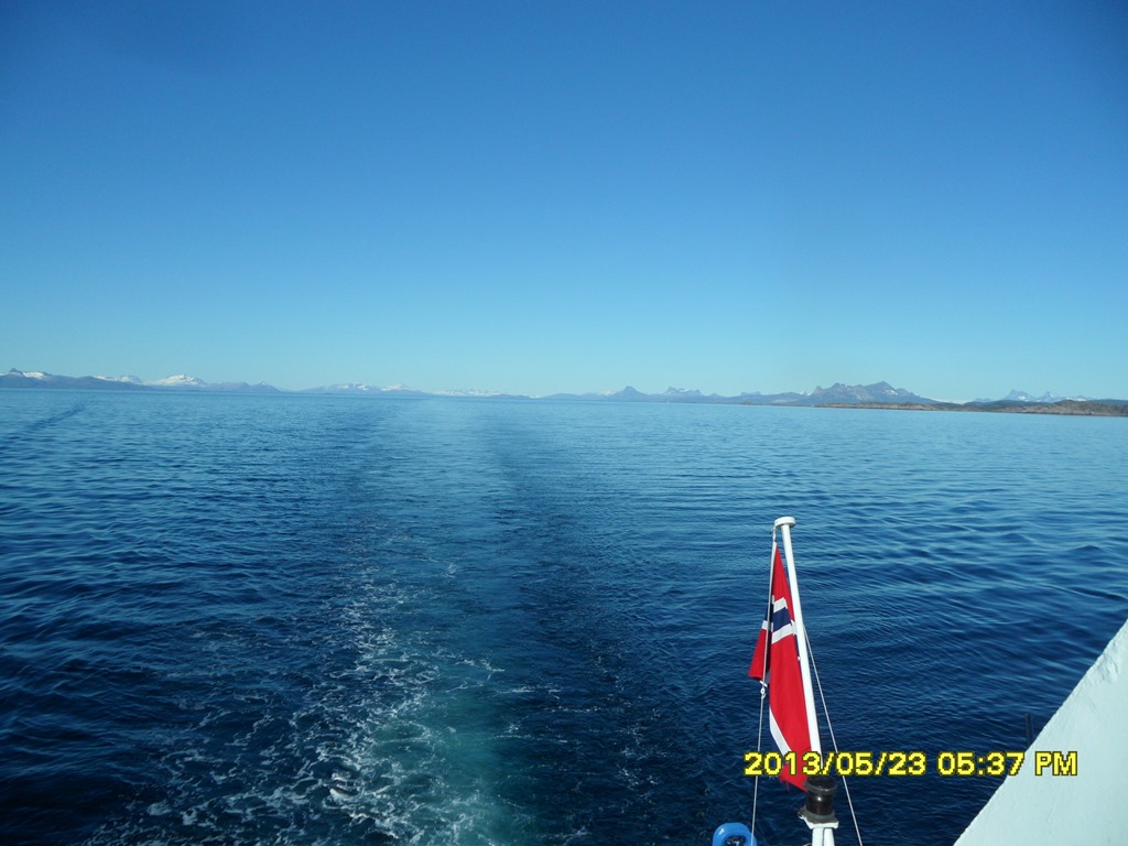 20:00 Går av vakten när vi lämnar Vestfjorden och börjar gå söderut. Får hoppas detta vädret håller i sig ett tag till.