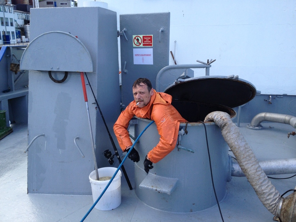 Efter ett par timmar får vi besked att vi kan börja göra rent lasttankarna inför varvet.