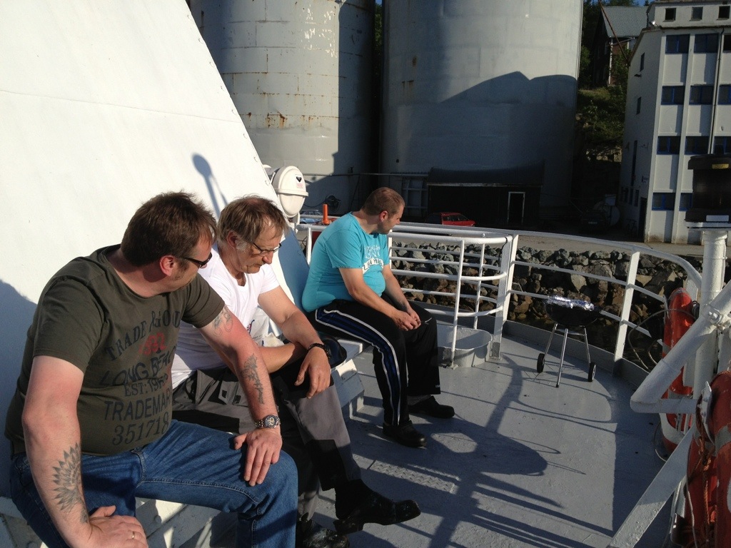 Vi äter frukost innan vi påbörjar lossningen. Därefter så får vi vänta på besked om det blir någon mer lastning innan varvsbesöket.
