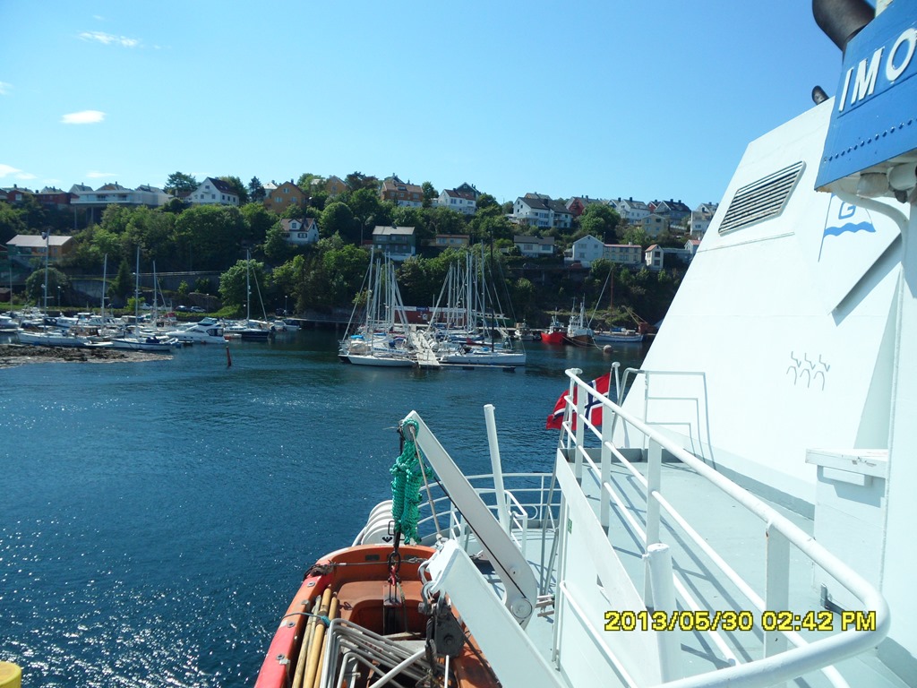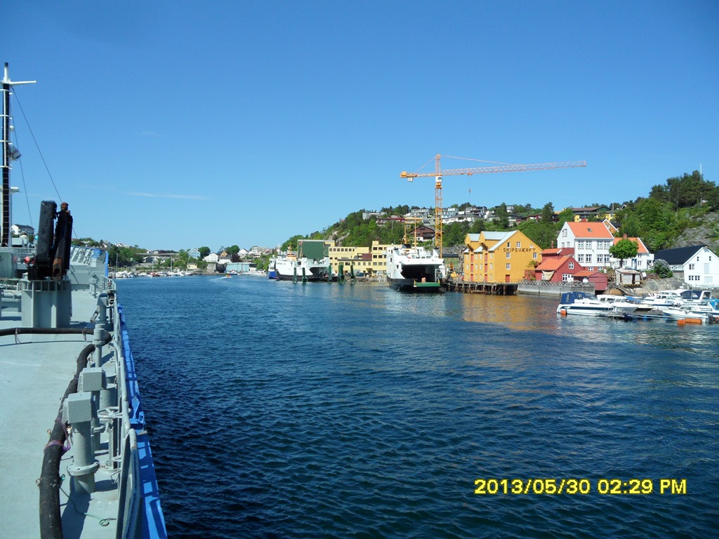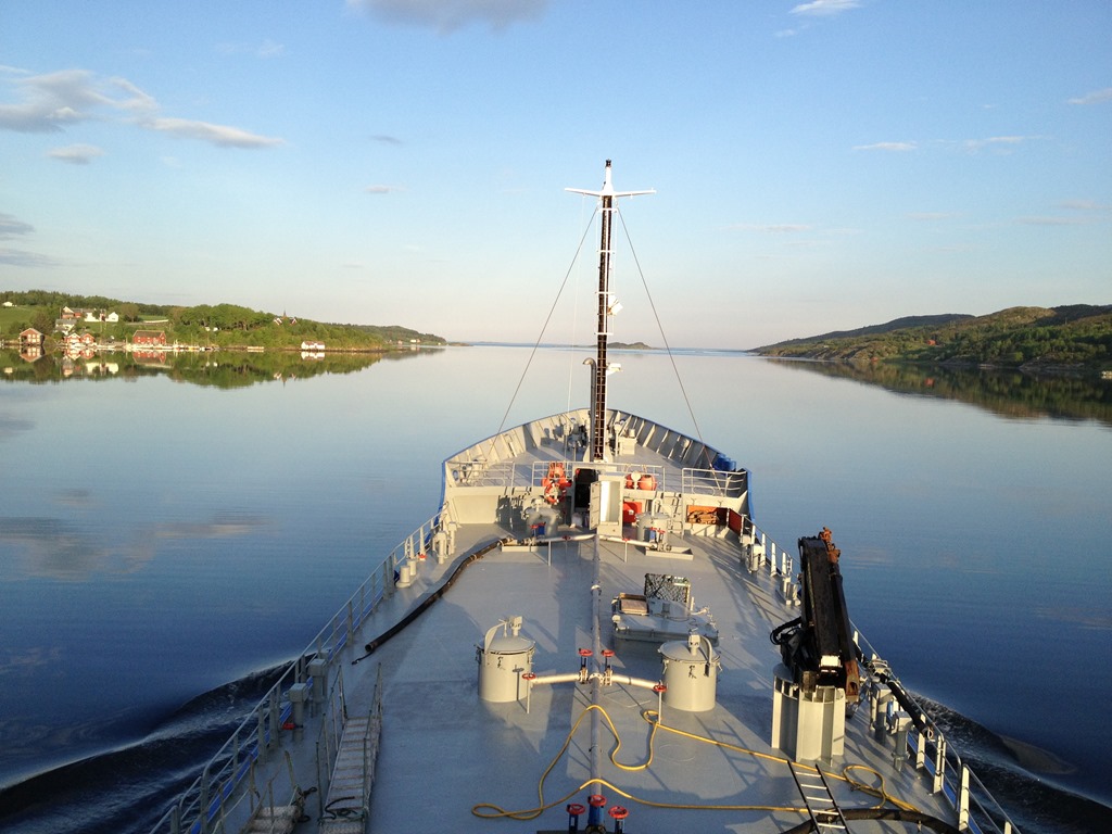 14:00 Vi börjar närma oss Kristiansund och går sakta inöver.