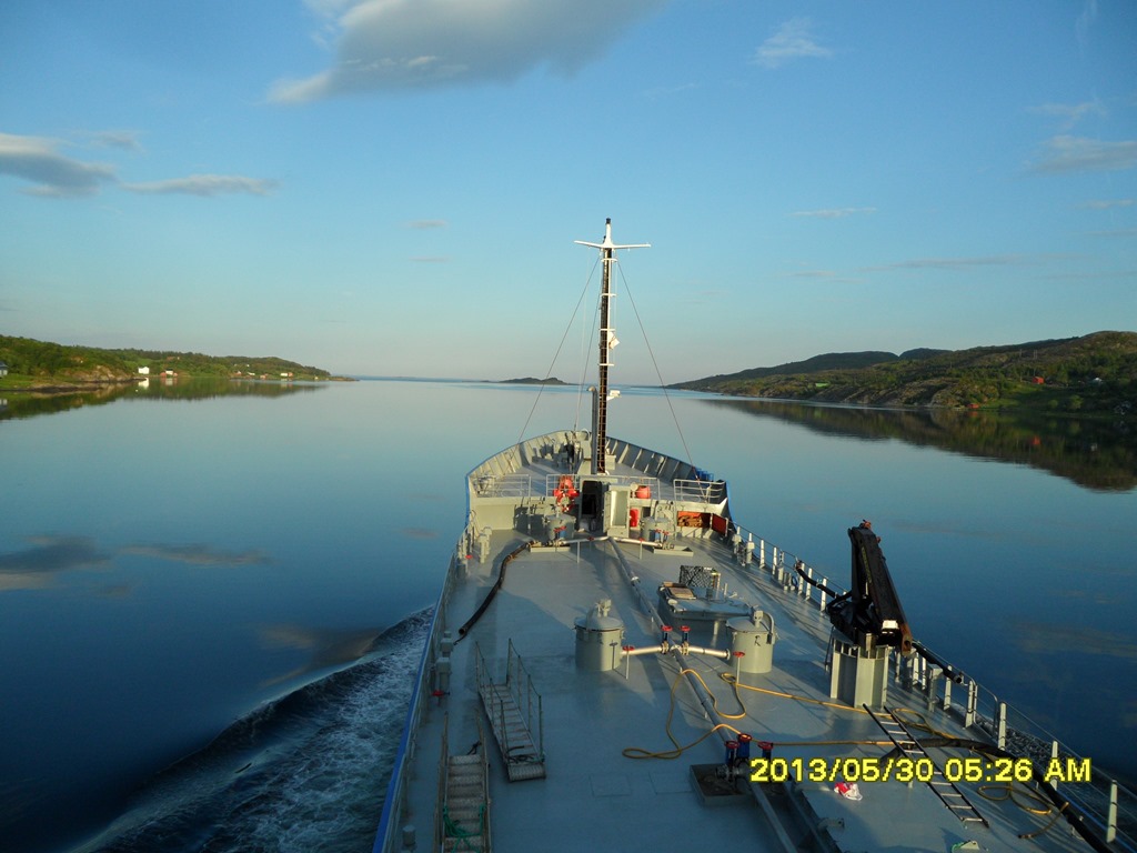 05:15 Avgår från Bjugn i stilla blek och solsken +18 grader.