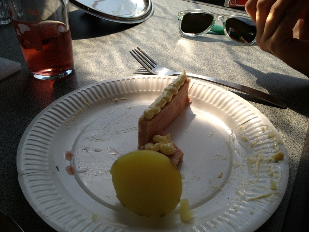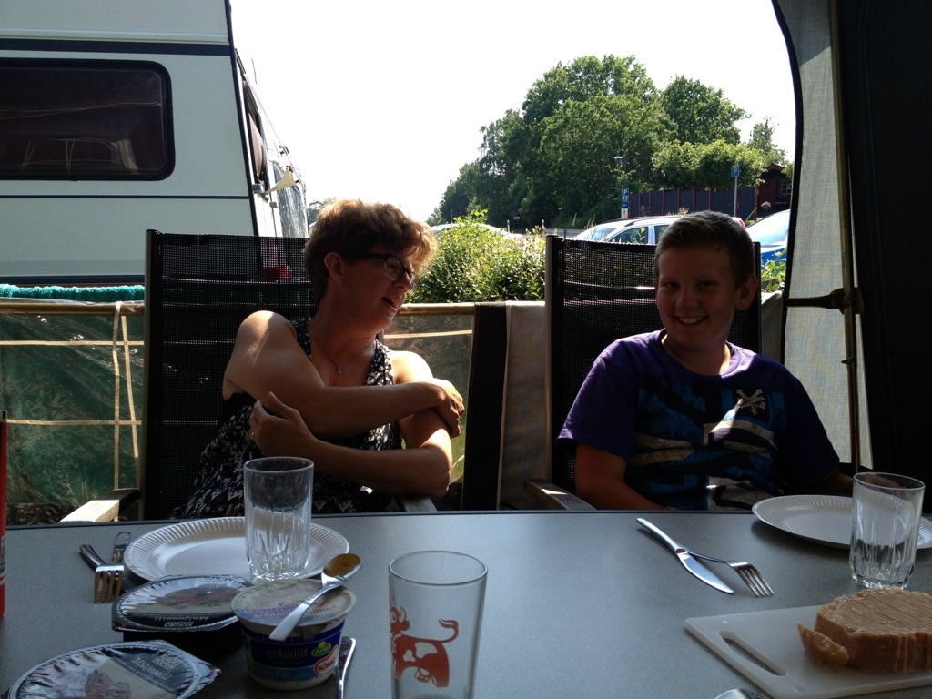 13:20 Framme på Järnaviks camping och satte upp våra vagnar och förtält. Jag och Peter åkte bort till Bräkne Hoby för att handla lite. När vi kom tillbaka så var lunchen klar. Hos oss bjöds det på matjessill och potatis för oss vuxna och burkskinka till barnen.