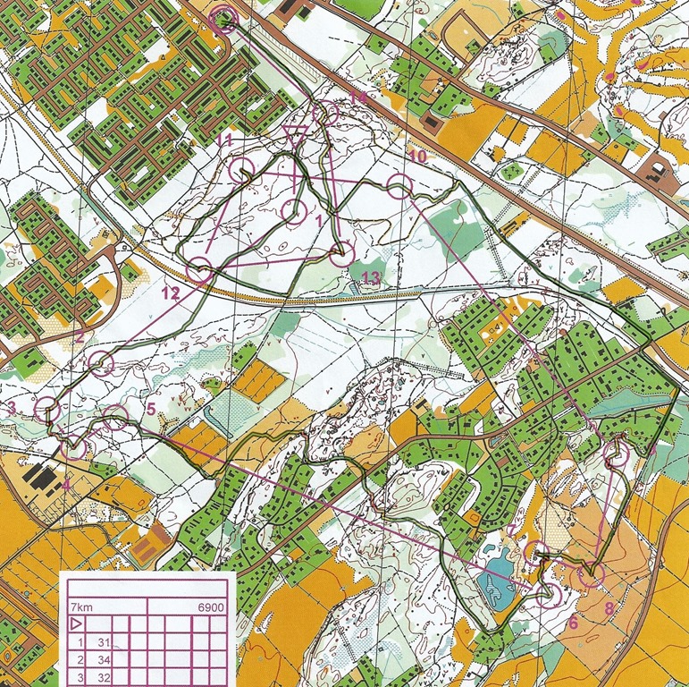 6:an Långsträcka upp mot bostadsområdet och sedan stigen upp mot vägen. Över vägen och upp för branten och sedan följa släpstigen upp mot stigen. Följa stigen på sidan av grönområdet och sedan stigen in mot fältet vid sjön. När jag sedan passerar gärdsgårdskorsningen så vänder jag mot öster och fram till höjden där kontrollen satt.