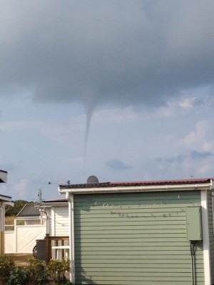 När alla hade vaknat hemma så åkte vi till Sjönevads marknad. På vägen dit så såg vi en tromb ute över havet.