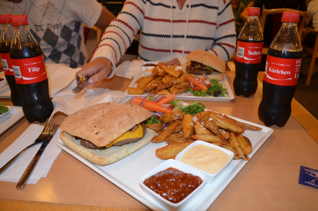 Väl ombord på färjan så gick vi till restaurangen och beställde varsin hamburgare.![]()