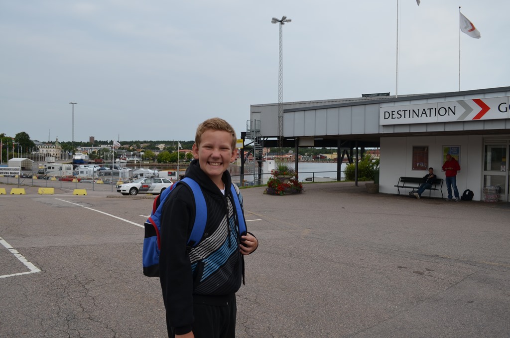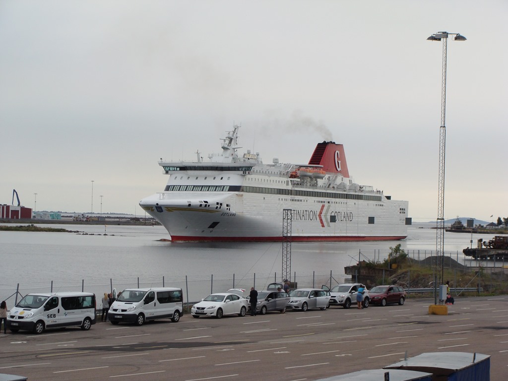 09:45 Framme i Oskarshamn och jag gick in för att ordna med biljetterna. När detta var ordnat så fick alla gå av bussen och checka in i färjeterminalen. Bussen körde runt och åkte in på bildäck.