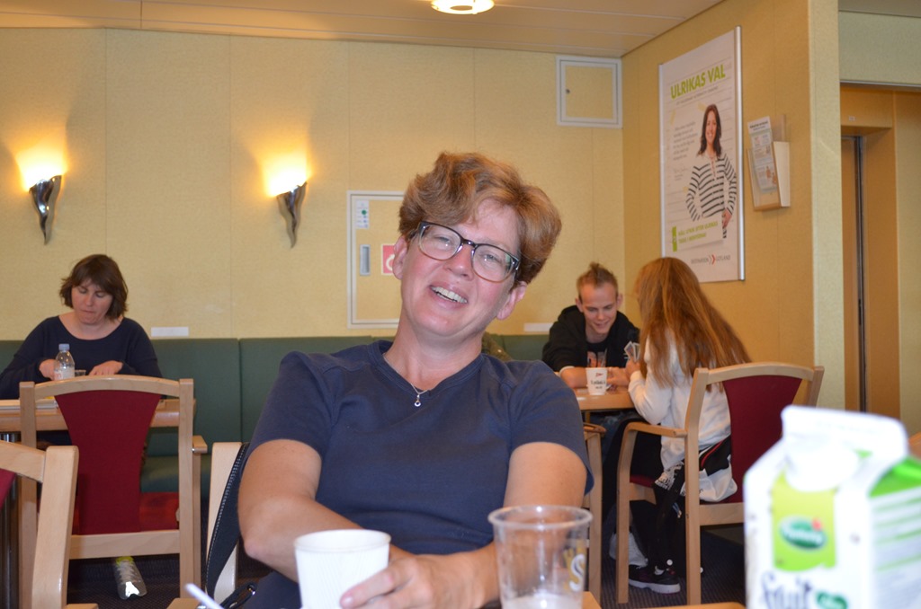 11:00-14:00 Färja mellan Oskarshamn och Visby. De mesta hade med sig egen matsäck men vissa gick till restaurangen och åt lunch. Sedan satt ungdomarna och spelade kort med varandra.